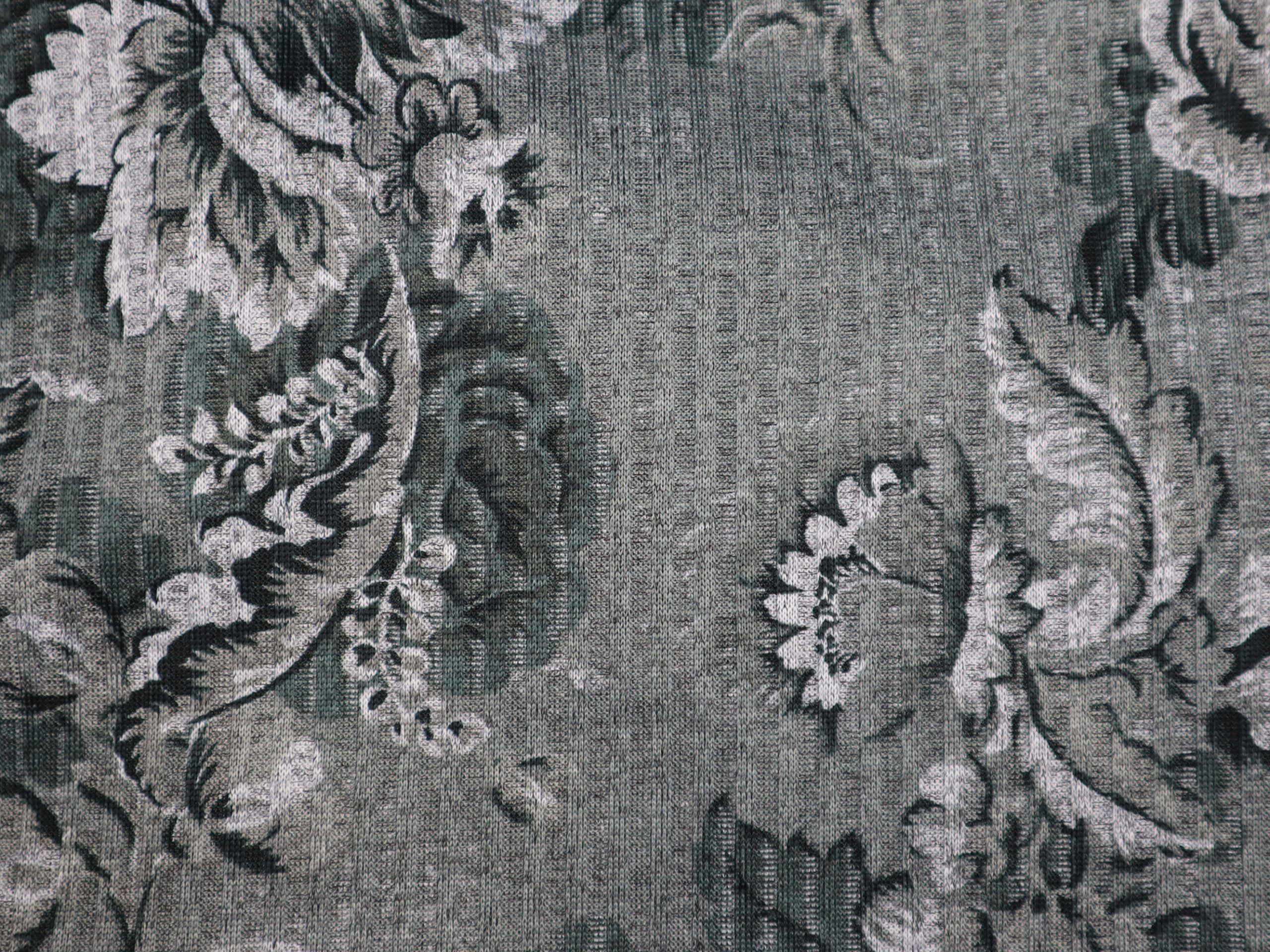 bedruckter Rippenstrick Teerosen auf grau