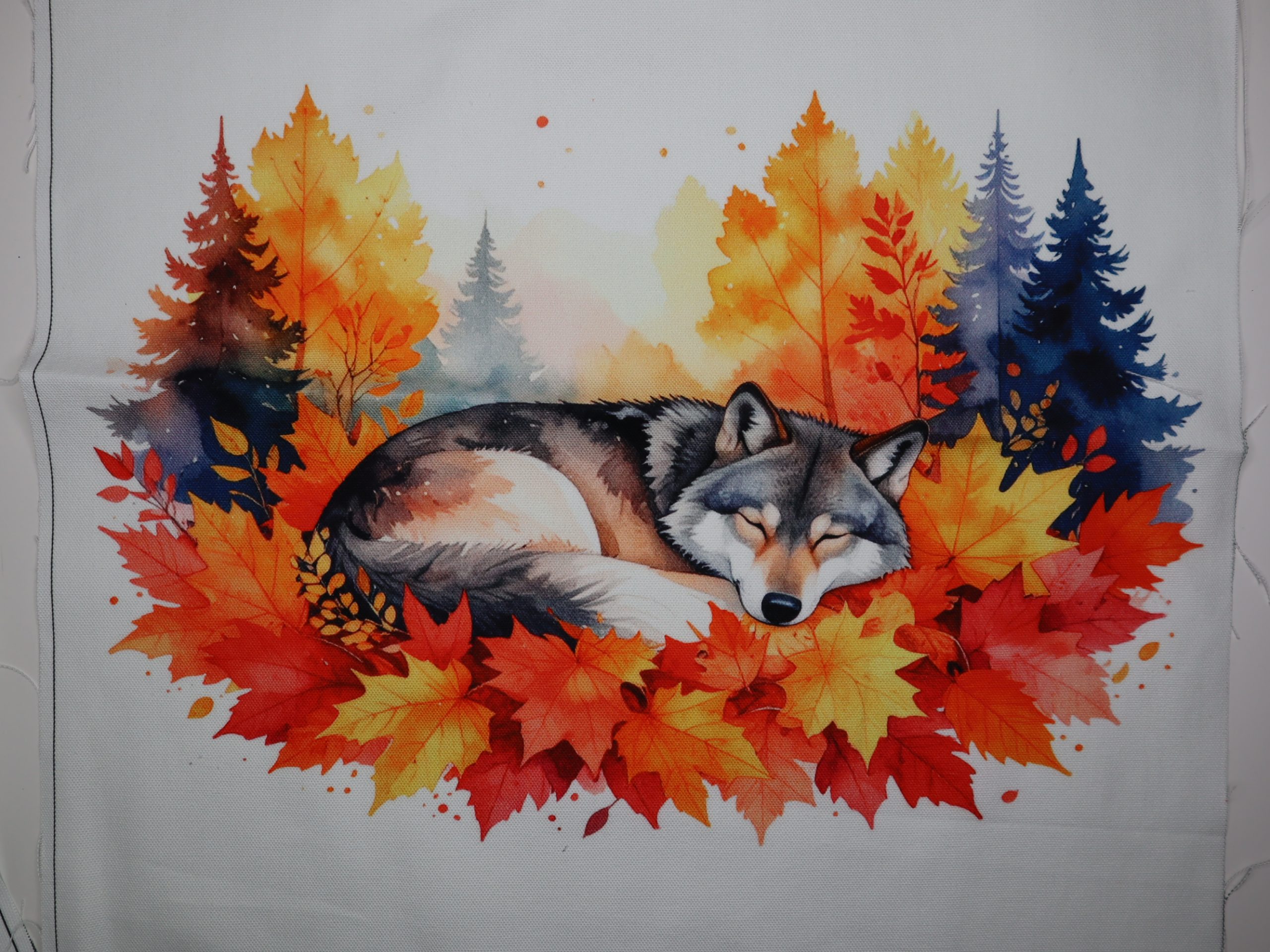 Eigenproduktion Heavy Canvas Panel 41 x 41 cm Herbst schlafender Wolf
